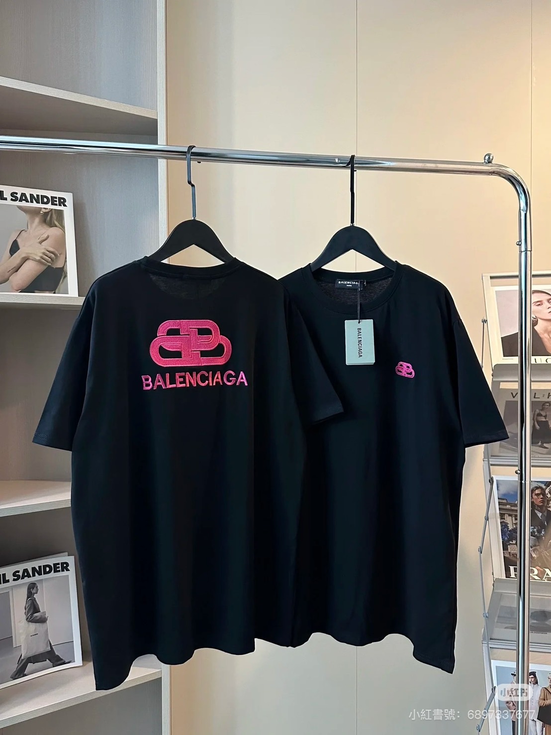 頂級原單Balenciage螢光粉刺繡圓領短袖