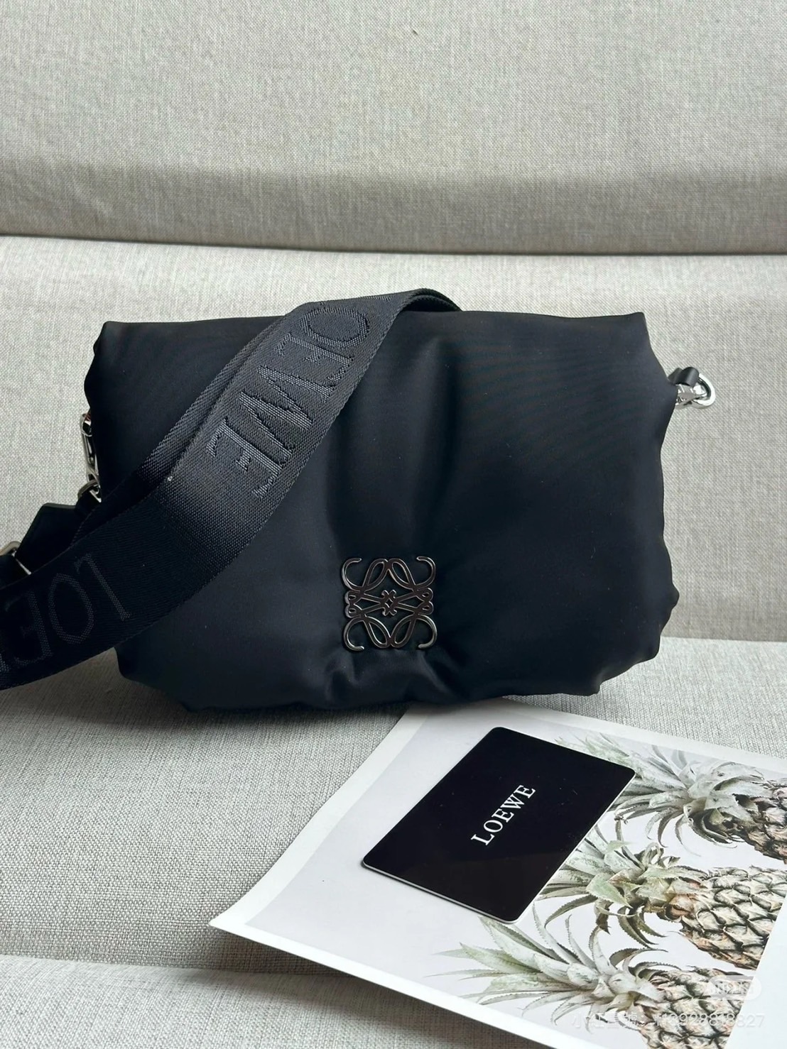 男生頂級原單Loewe Puffer Goya尼龍黑色郵差包