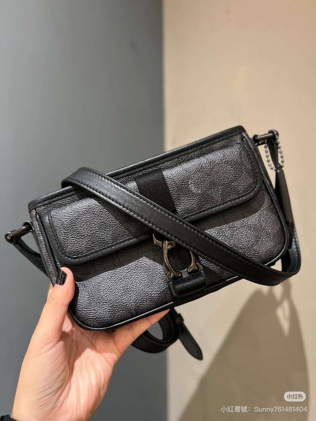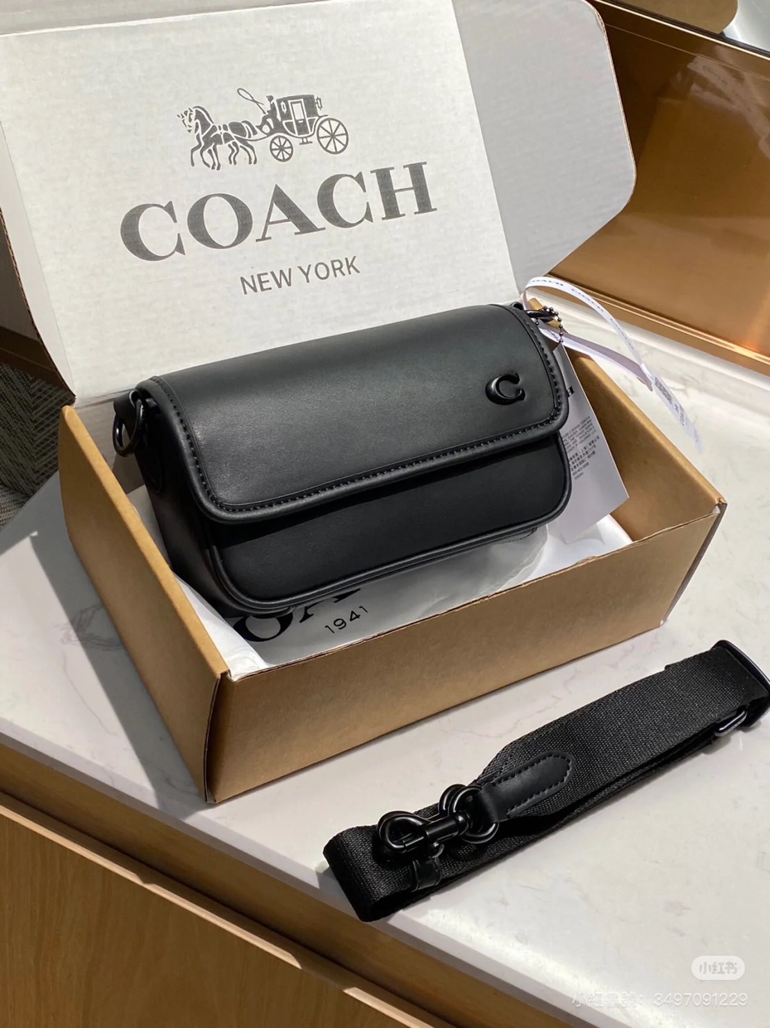 男生頂級原單Coach Charter 全牛皮黑武士手機包