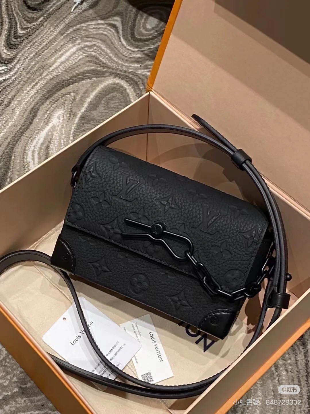 男生頂級原單LV黑色牛皮city keep手袋 單肩斜跨包斜跨包