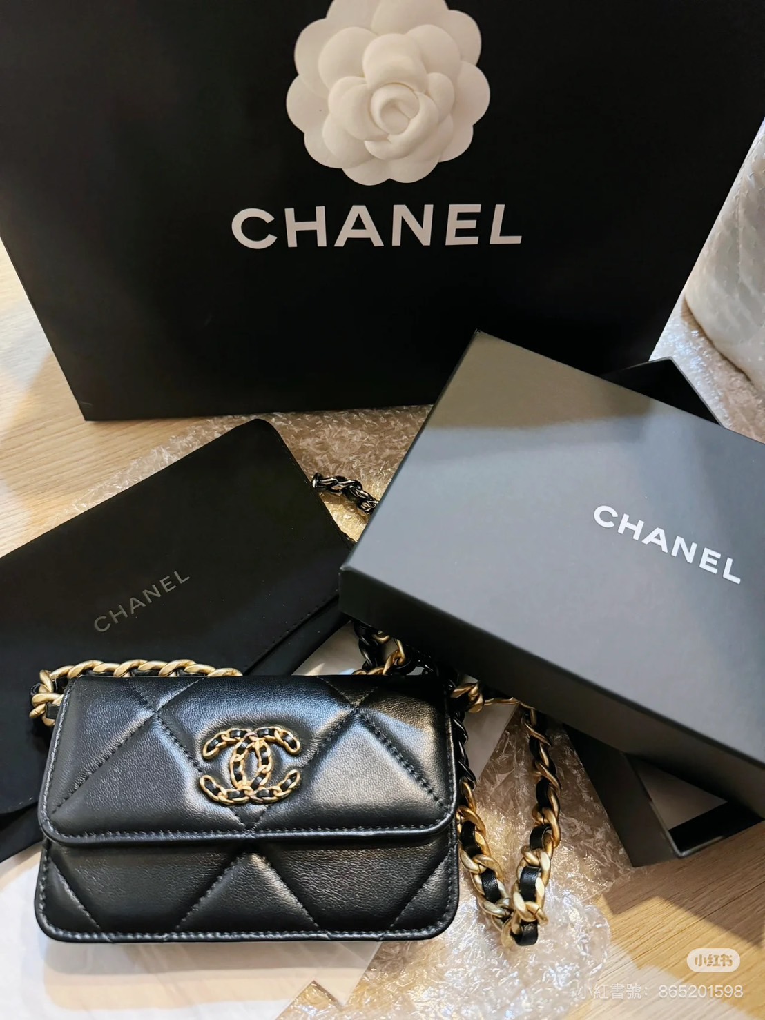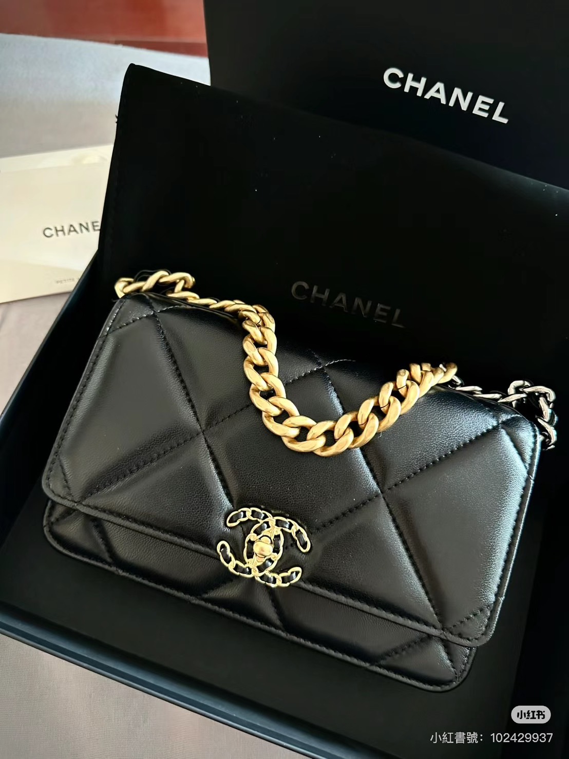女生頂級原單Chanel 19 bag woc黑金小羊皮