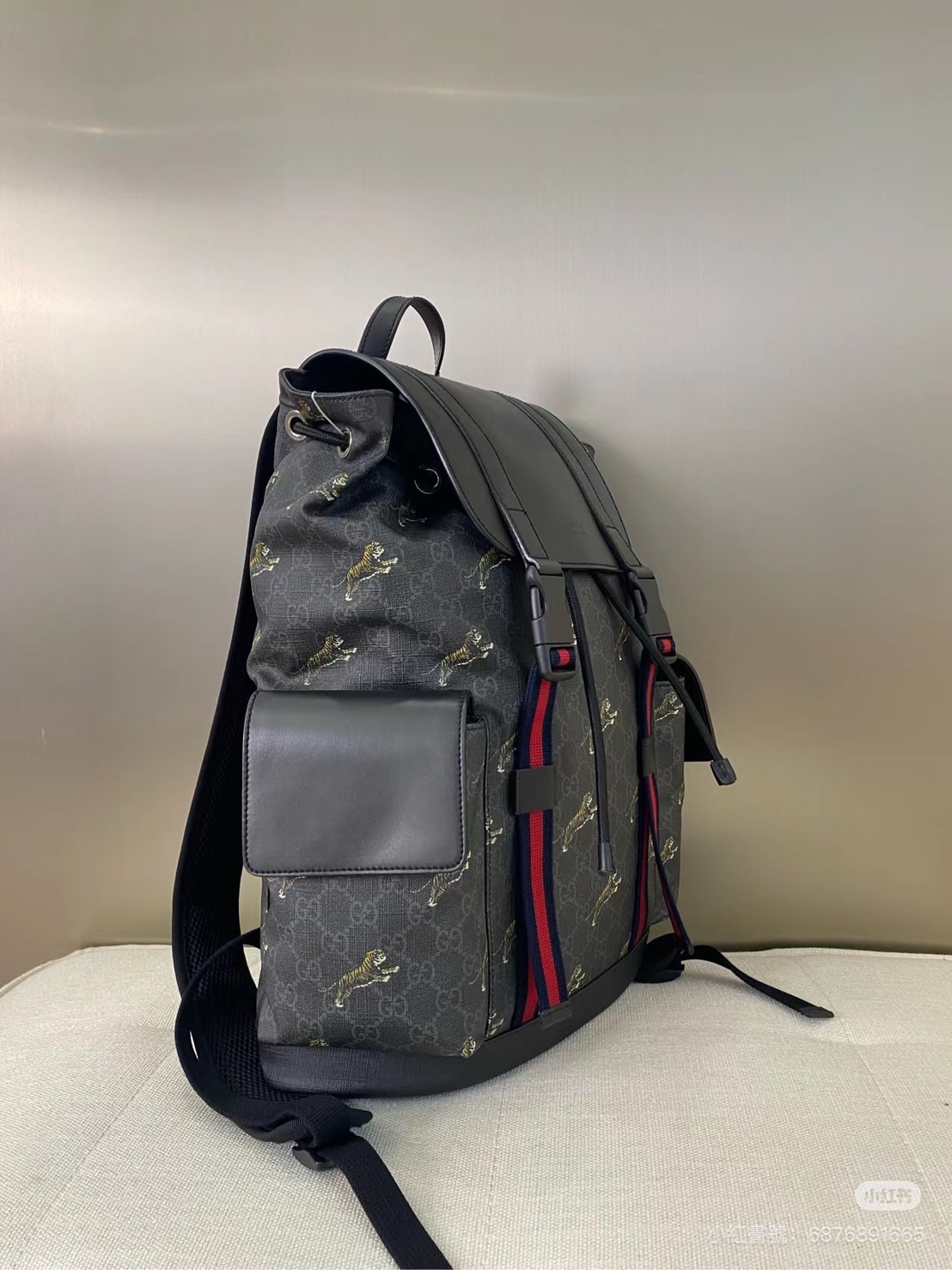 男生頂級原單Gucci 黑色老花老虎印花雙肩包