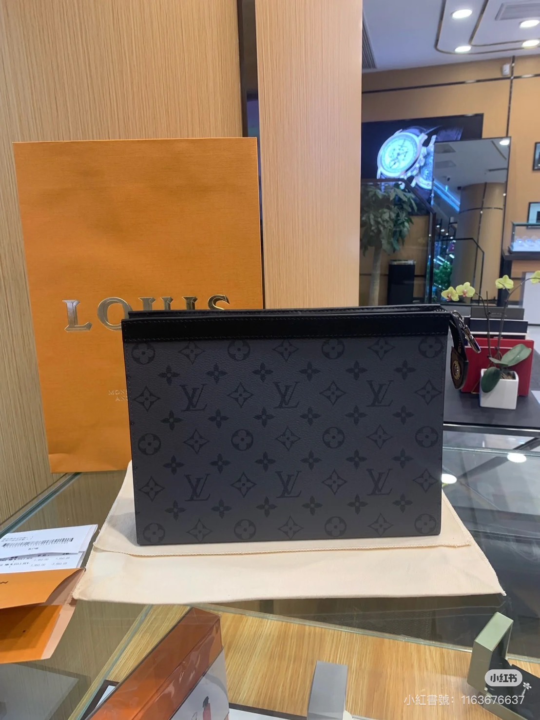 男生頂級原單LV Pochette Voyage黑灰拼接手拿包
