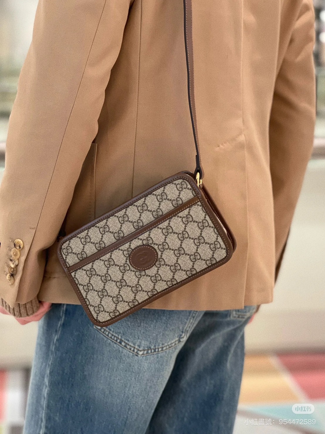 男生頂級原單Gucci Retro帆布單間斜跨相機包