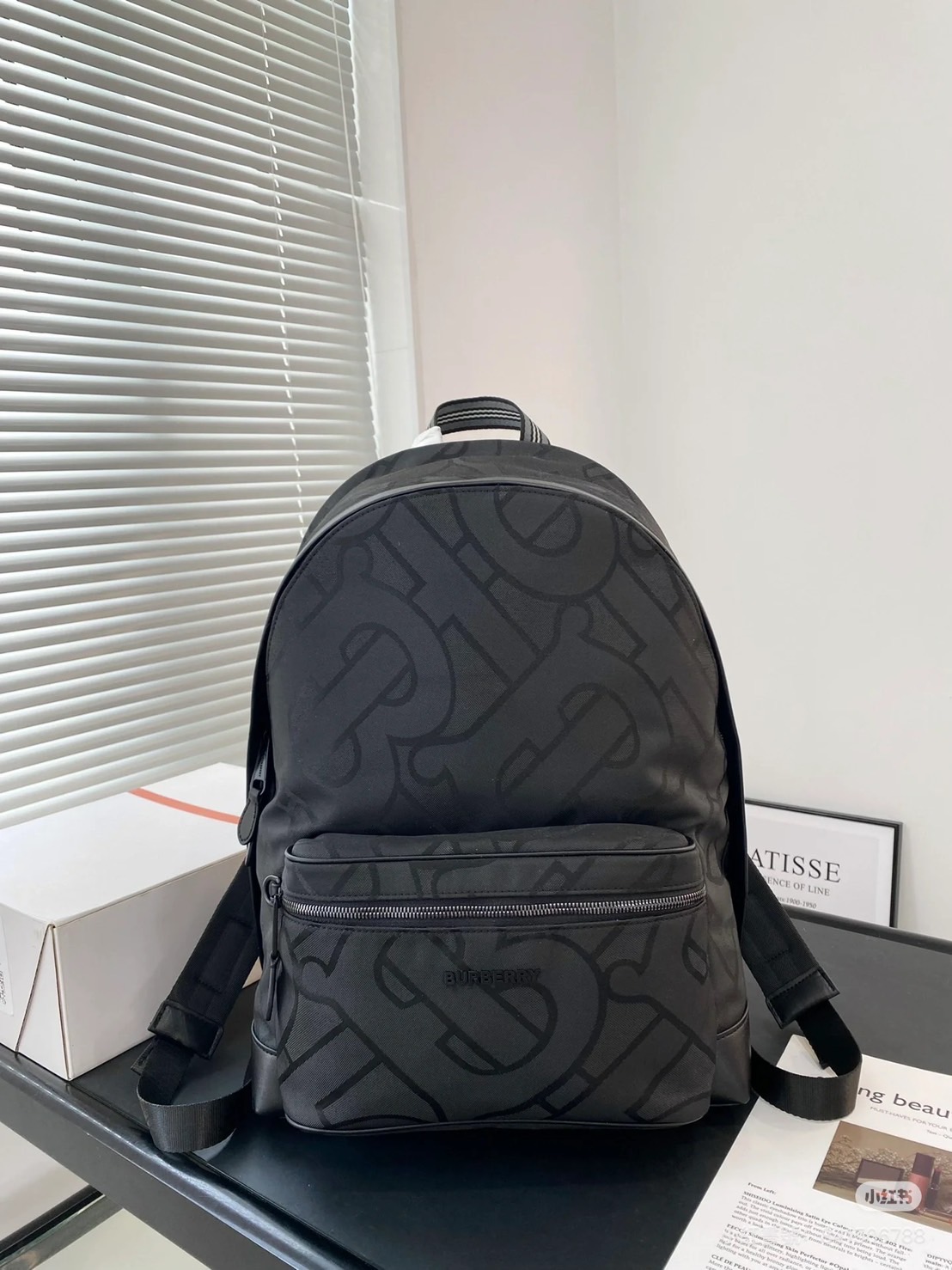 男生頂級原單Burberry黑色打底滿版老花雙肩包
