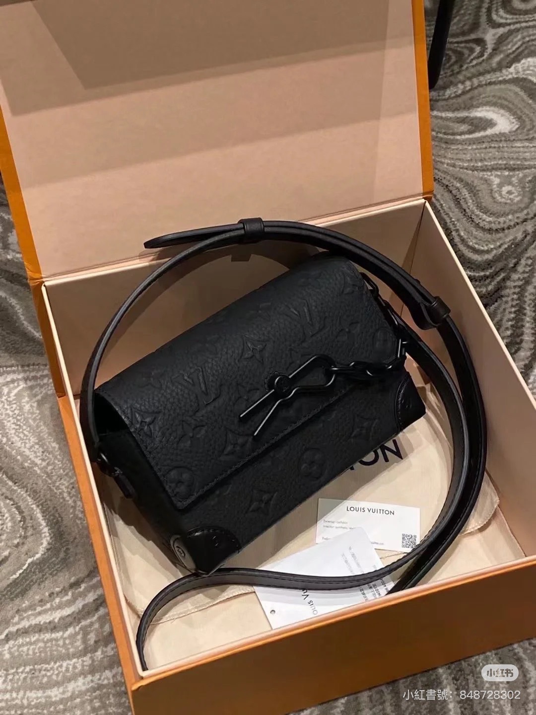 男生頂級原單LV Steamer牛皮老花壓紋鎖扣翻蓋包
